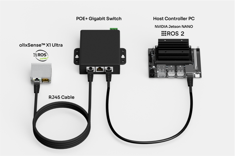 Power over Ethernet (PoE+) brings simplicity and performance together — delivering power and high-speed data through a single cable. With built-in Gigabit Ethernet, each Olive sensor becomes a plug-and-play network node, reducing clutter and ensuring stable, low-latency communication for real-time robotics.