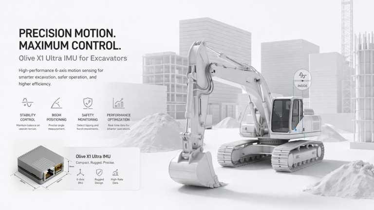 Olive X1 Ultra delivers high-frequency, low-latency motion data to excavators, enabling precise boom control, enhanced safety, and smarter machine operation in demanding environments.